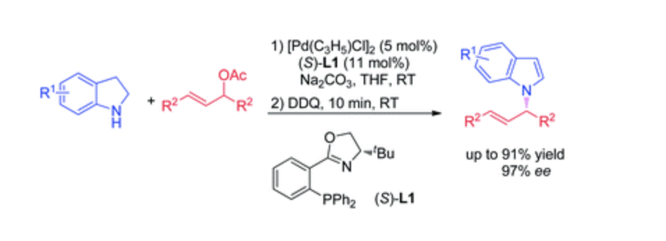 5. Enantioselective synthesis ofN-allylindoles via palladium-catalyzed allylic amination/oxidation of indolines.