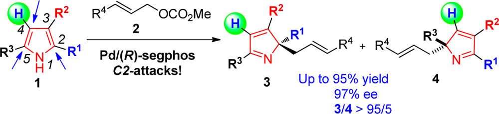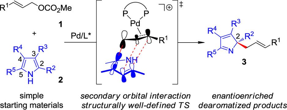11. Mechanistic insights into the Pd-catalyzed intermolecular asymmetric allylic dearomatization of multisubstituted pyrroles: understanding the remarkable regio- and enantioselectivity.