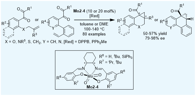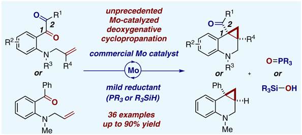 25. Catalytic deoxygenative cyclopropanation of 1,2-dicarbonyl or monocarbonyl compounds via molybdenum catalysis.