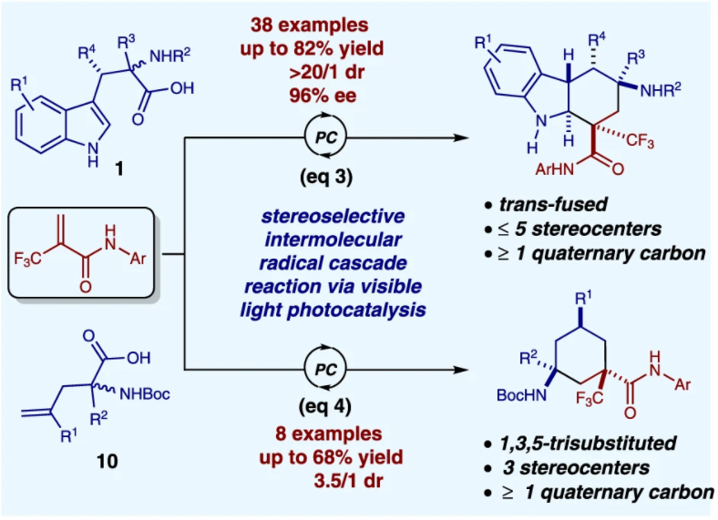 26. Stereoselective intermolecular radical cascade reactions of tryptophans or ɤ-alkenyl-α-amino acids with acrylamides via photoredox catalysis.