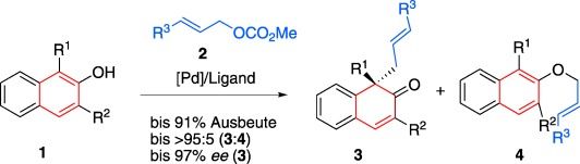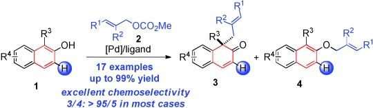 15. Palladium-catalyzed intermolecular asymmetric allylic dearomatization reaction of naphthol derivatives.