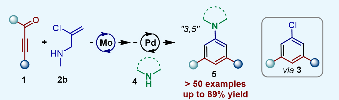 38. Synthesis of meta-substituted benzenes via Mo-Catalyzed intermolecular deoxygenative coupling of ynones and allylic amines.