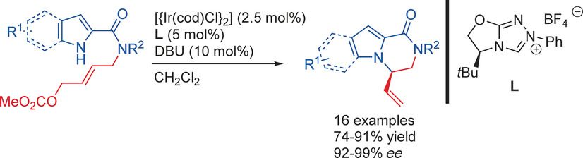 21. Enantioselective synthesis of pyrrole fused piperazine and piperazinone derivatives via Ir-catalyzed asymmetric allylic amination.